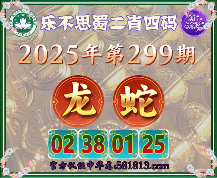 299期:〖乐不思蜀〗 📸二肖四码📸【龙蛇】【02.38.01.25】开:00准