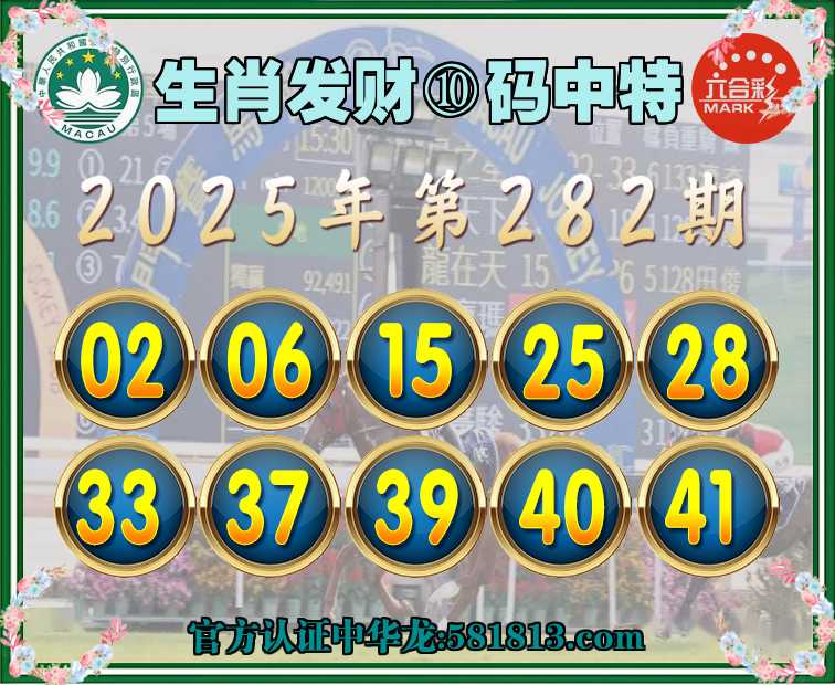 282期:『生肖发财』 ⌚⑩码中特⌚开:41准