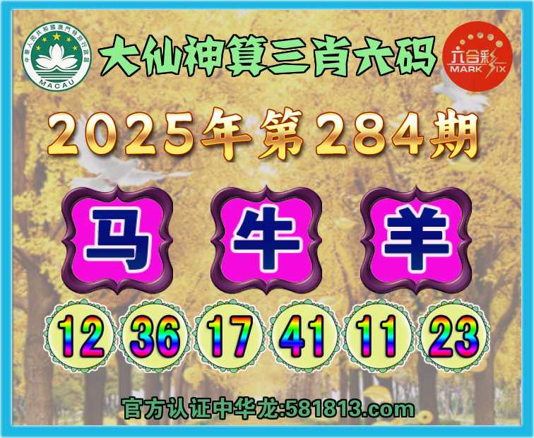 284期:『大仙神算』 🥧三肖六码🥧【马牛羊】开:牛41准