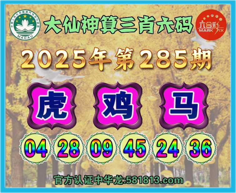 285期:『大仙神算』 🥧三肖六码🥧【虎鸡马】开:马24准