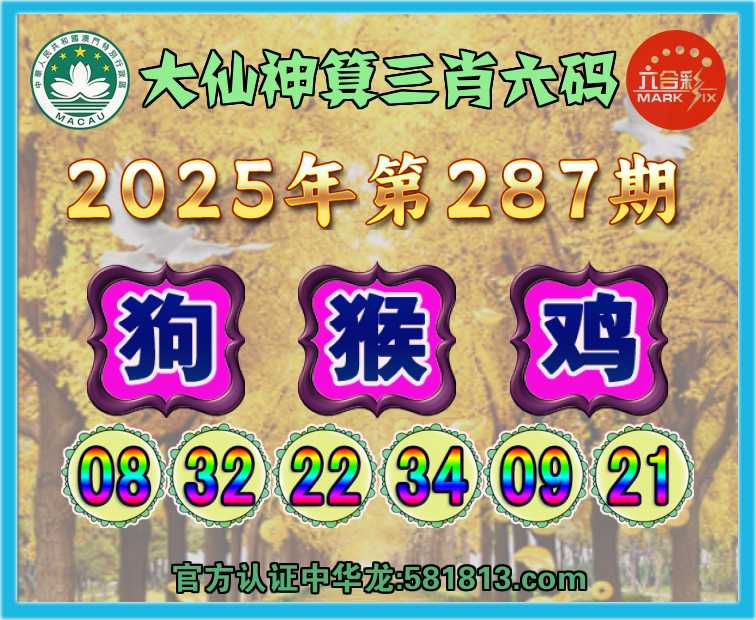 287期:『大仙神算』 🥧三肖六码🥧【狗猴鸡】开:猴34准