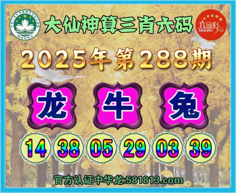 288期:『大仙神算』 🥧三肖六码🥧【龙牛兔】开:龙14准
