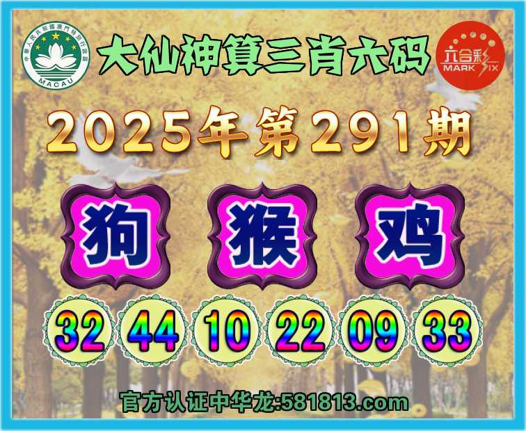 291期:『大仙神算』 🥧三肖六码🥧【狗猴鸡】开:狗44准