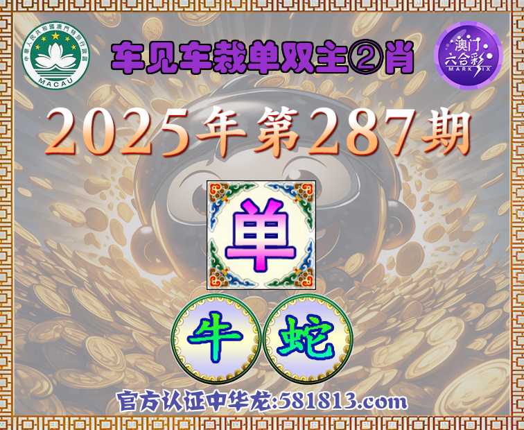 287期:《车见车栽》 ♣️单双主②肖♣️【单-牛蛇】开:猴34错