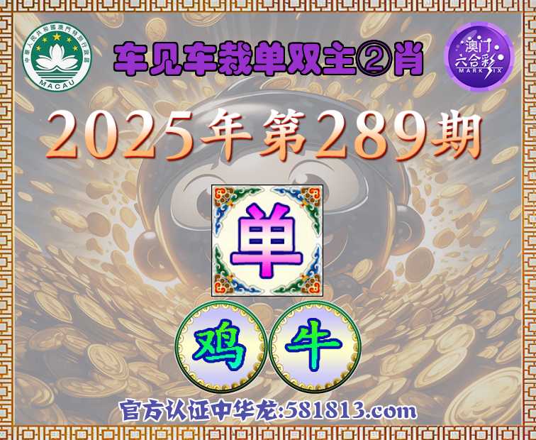 289期:《车见车栽》 ♣️单双主②肖♣️【单-鸡牛】开:00准
