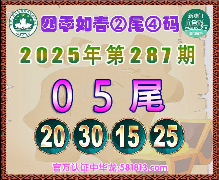 287期:【四季如春】 🎀②尾④码🎀【05尾主:20.30.15.25】开:34错