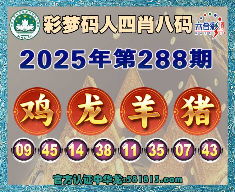 288期:《彩梦码人》 🍔四肖八码🍔【鸡龙羊猪】开:龙14准上榜认证