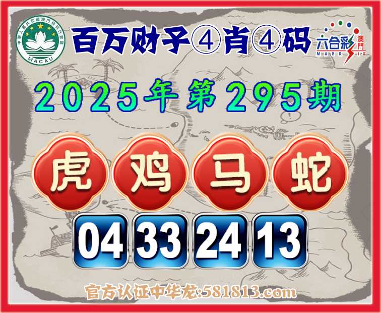 295期:【百万财子】 🧶④肖④码🧶【虎鸡马蛇】【04.33.24.13】开:牛05错
