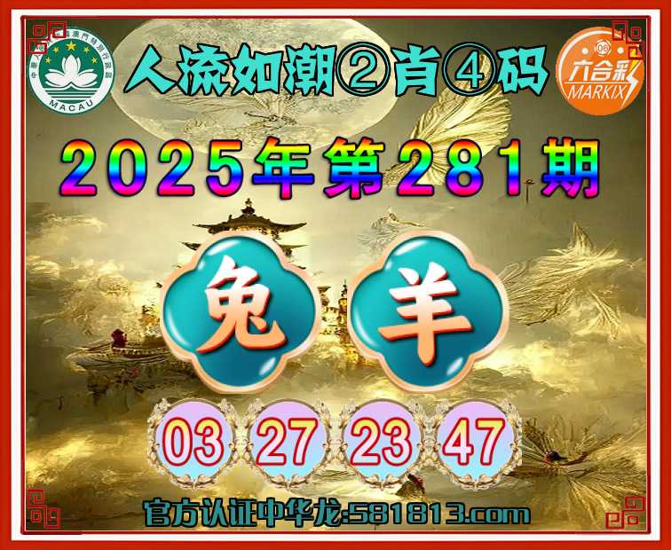 281期:《人流如潮》 ♠️②肖④码♠️【兔羊】【03.27.23.47】开:羊47准
