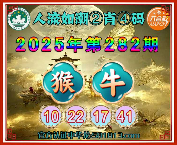 282期:《人流如潮》 ♠️②肖④码♠️【猴牛】【10.22.17.41】开:牛41准