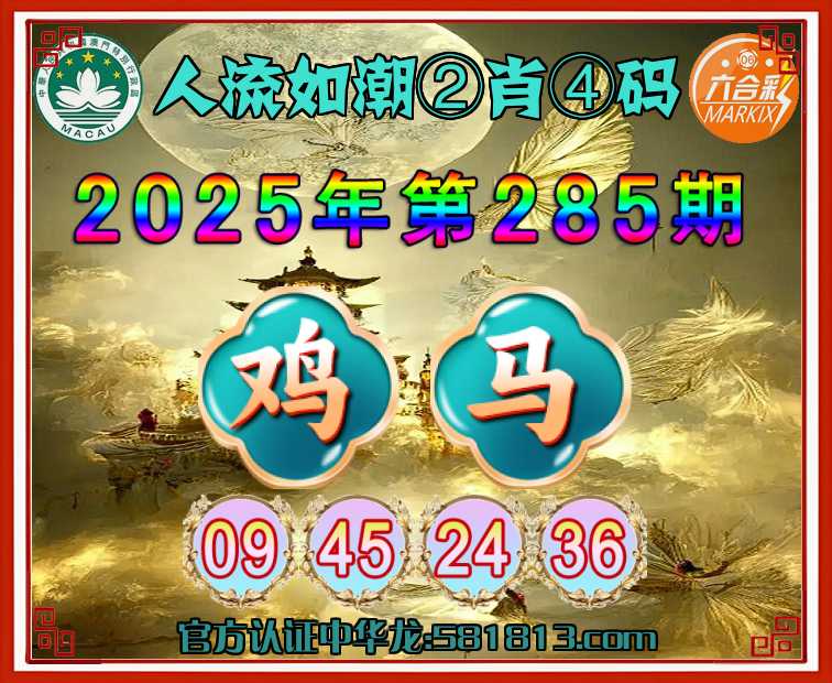 285期:《人流如潮》 ♠️②肖④码♠️【鸡马】【09.45.24.36】开:马24准