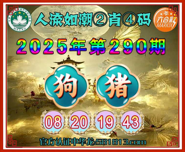 290期:《人流如潮》 ♠️②肖④码♠️【狗猪】【08.20.19.43】开:猪19准