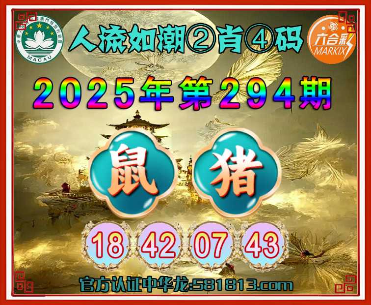 294期:《人流如潮》 ♠️②肖④码♠️【鼠猪】【18.42.07.43】开:鼠18准