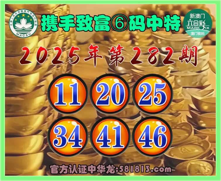 282期:《携手致富》 🩴⑥码中特🩴【11.20.25.34.41.46】开:41准