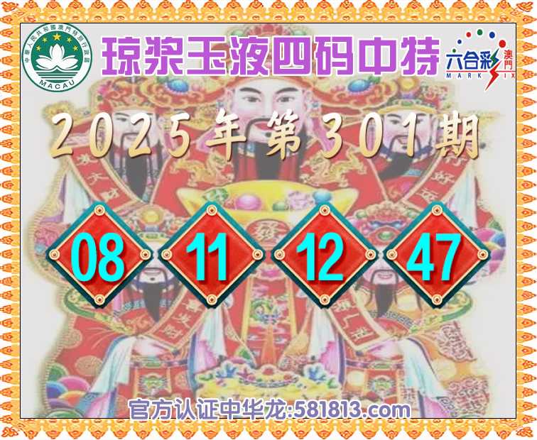 301期: ⚽『琼浆玉液』 ⚽四码中特⚽【08.11.12.47】开:00准